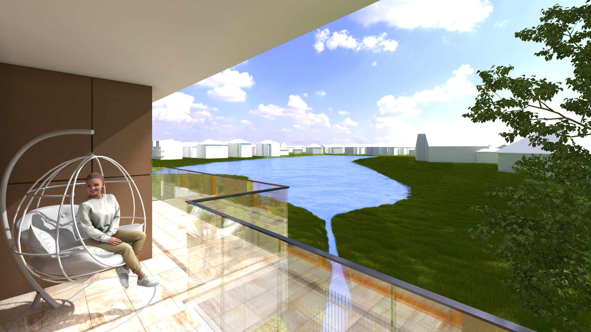 • mieszkania na piętrach z dużymi przeszklonymi balkonami i ogródkiem,